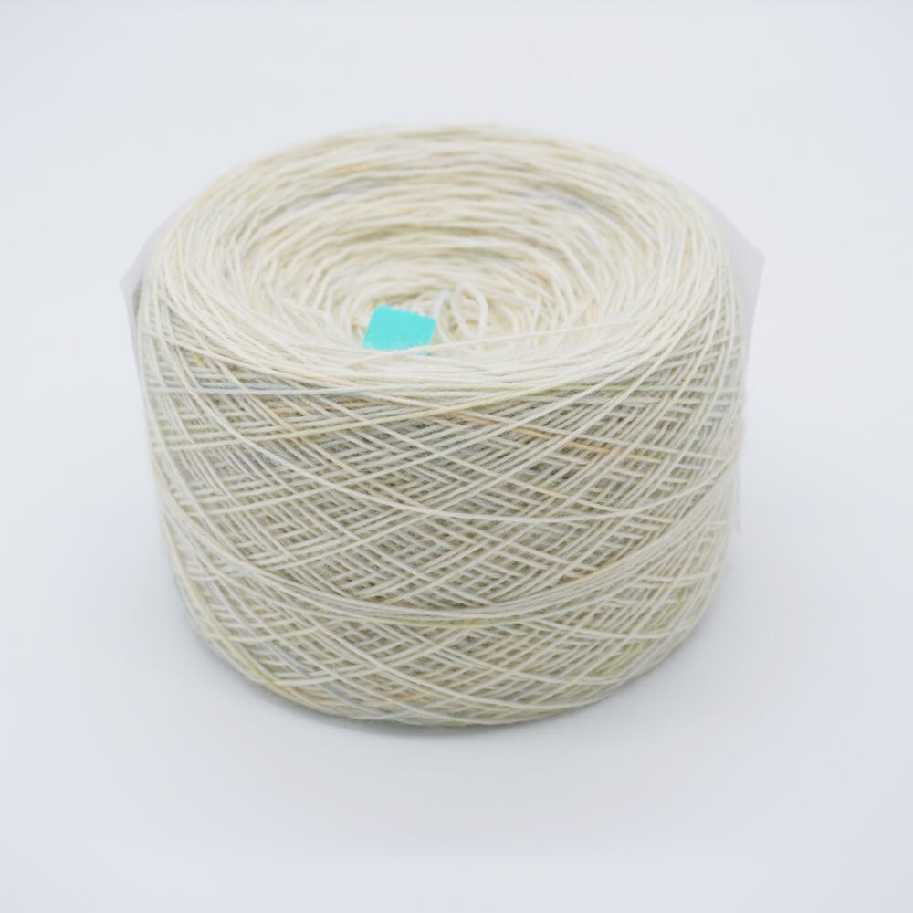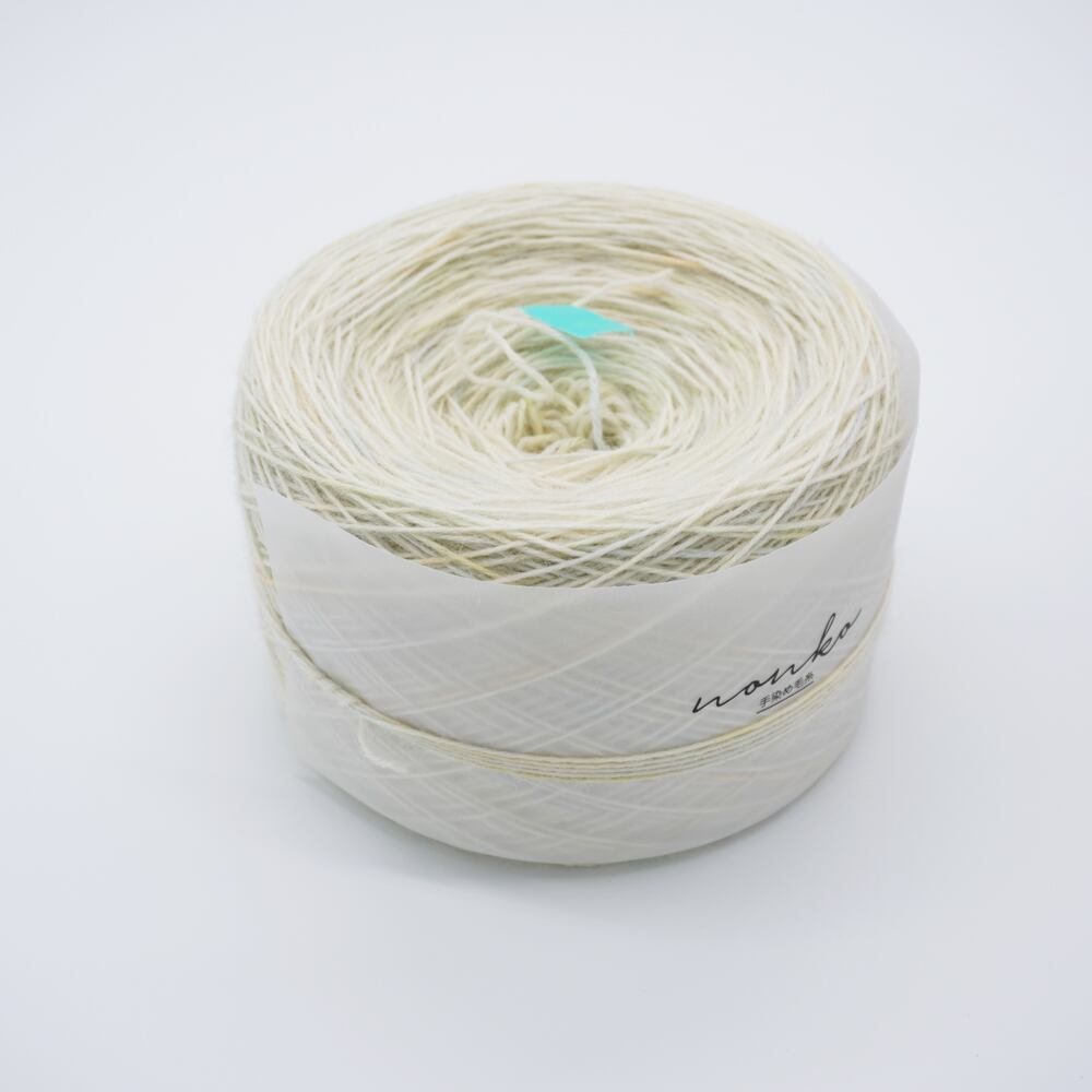 薄いイエローとグリーン・ブルーのミックス染め毛糸です。