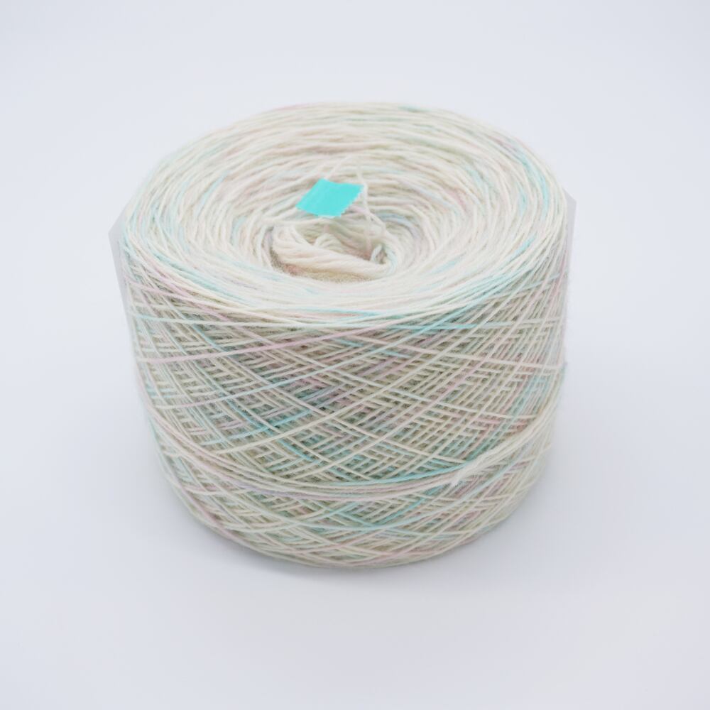 優しい色合いのピンクとブルーのミックス染め毛糸です。